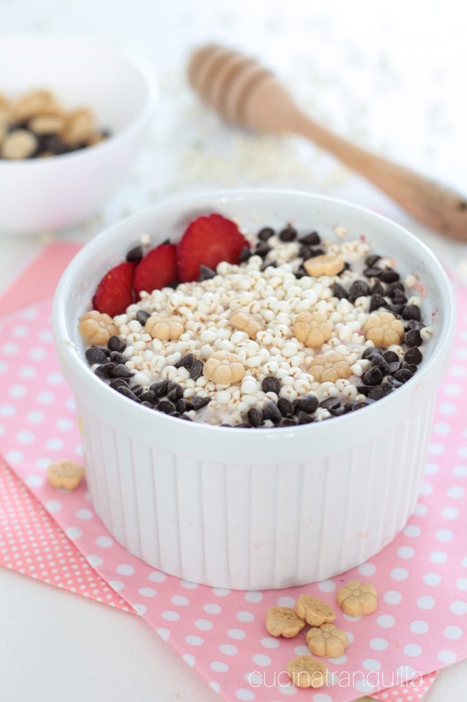 Millet soufflé avec lait et fraises