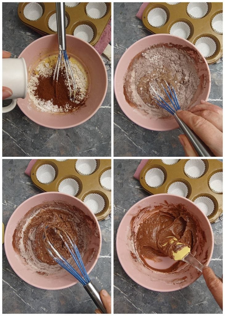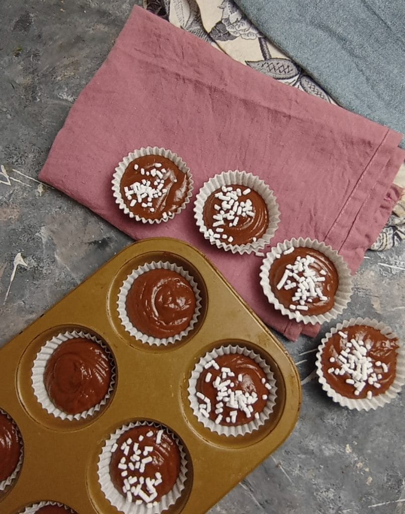 Mini muffins au cacao, avec des grains de sucre et très peu d’ingrédients.