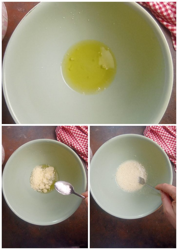 • Pendant ce temps, dans un bol, mélangez les œufs avec le fromage râpé et le sel.