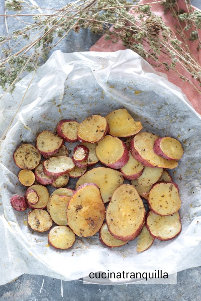 Il suffit vraiment de très peu d’étapes pour réaliser cette recette et le conseil que je vous donne immédiatement est de bien laver les patates, peut-être en vous aidant d’une brosse pour éliminer les éventuels résidus de terre de la peau.