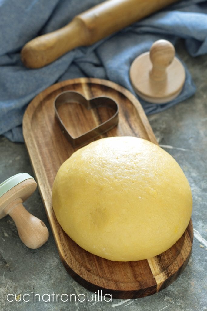 Une autre étape fondamentale pour cette recette est d’utiliser des œufs à température ambiante de taille moyenne. Les œufs, en général, dans la préparation des pâtes sucrées ou salées, devraient être à température ambiante pour permettre aux ingrédients de mieux se lier. En effet, s’ils sont utilisés froids, ils pourraient durcir les graisses dans la pâte avec un résultat final non homogène.