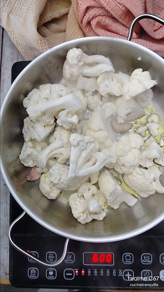 Faites revenir le chou-fleur pendant quelques minutes avec l’ail.
