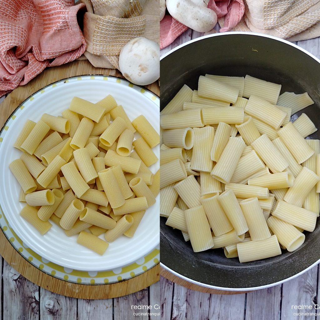 Entre-temps, nettoyez les champignons en éliminant la partie de la tige avec les racines et en nettoyant le reste avec un chiffon humide. Coupez-les en tranches fines et faites-les cuire dans une poêle avec l’huile d’olive extra vierge en ajoutant une pincée de sel fin seulement à la fin de la cuisson.