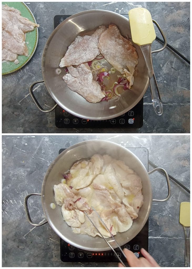 Ajoutez les tranches de poitrine de poulet à l’oignon.