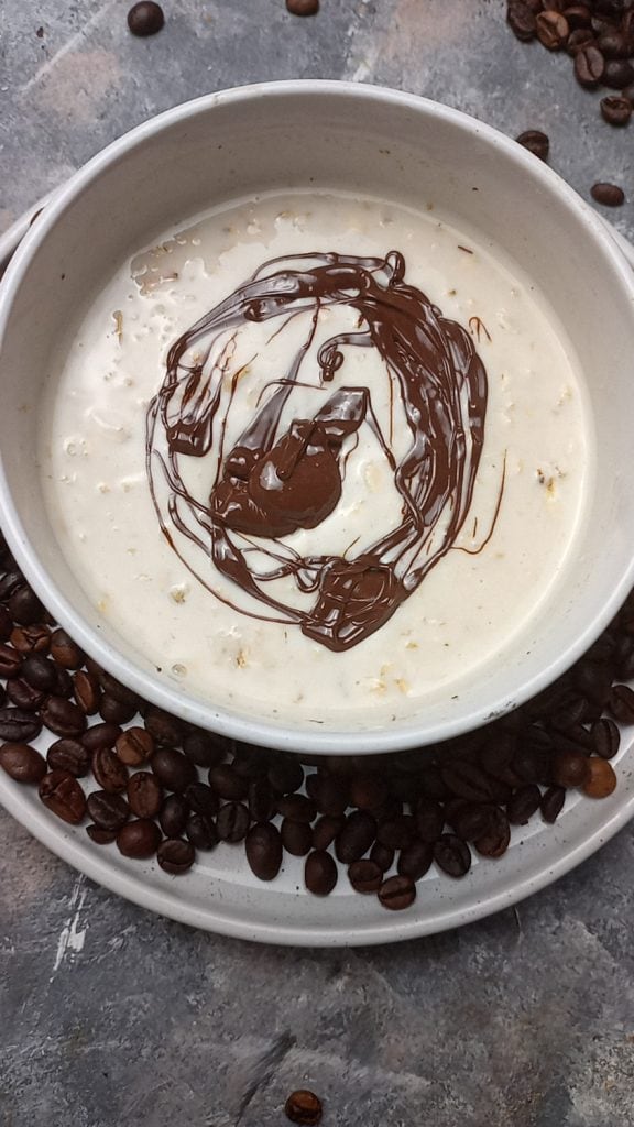 Porridge overnight avec yaourt au café frais et délicieux, une recette simple et rapide pour une recette pleine de goût, parfaite à préparer la veille et à déguster au petit-déjeuner.
