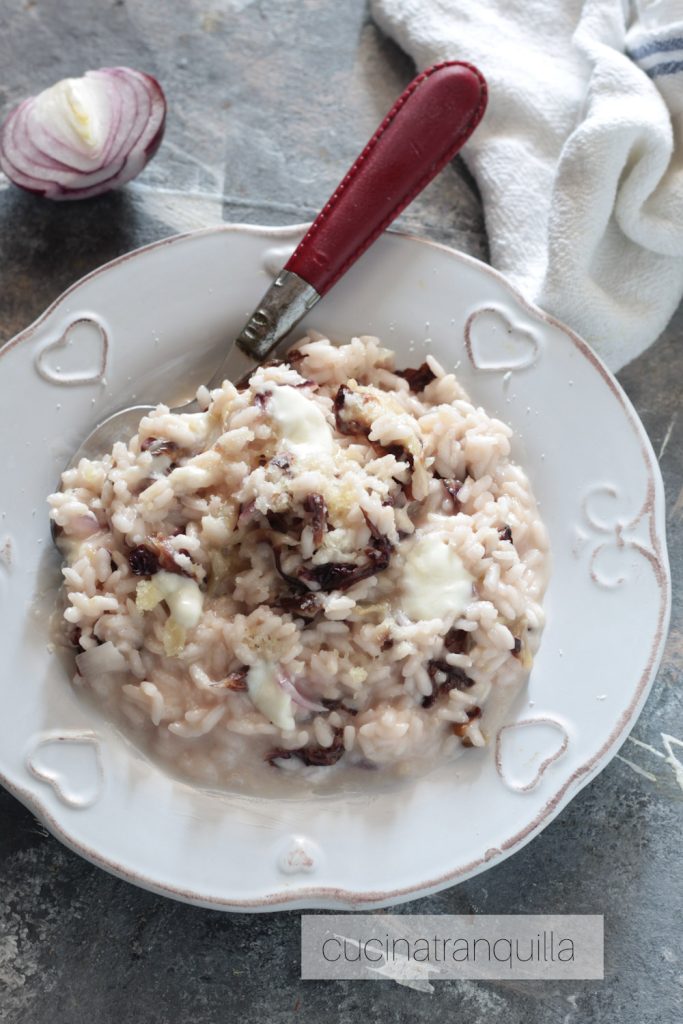Risotto radicchio et stracchino, un plat principal crémeux et délicieux, très savoureux, un peu différent de la version précédente sur le blog.