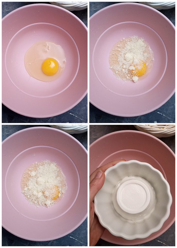 Dans un bol, mélangez l’œuf au Grana râpé.