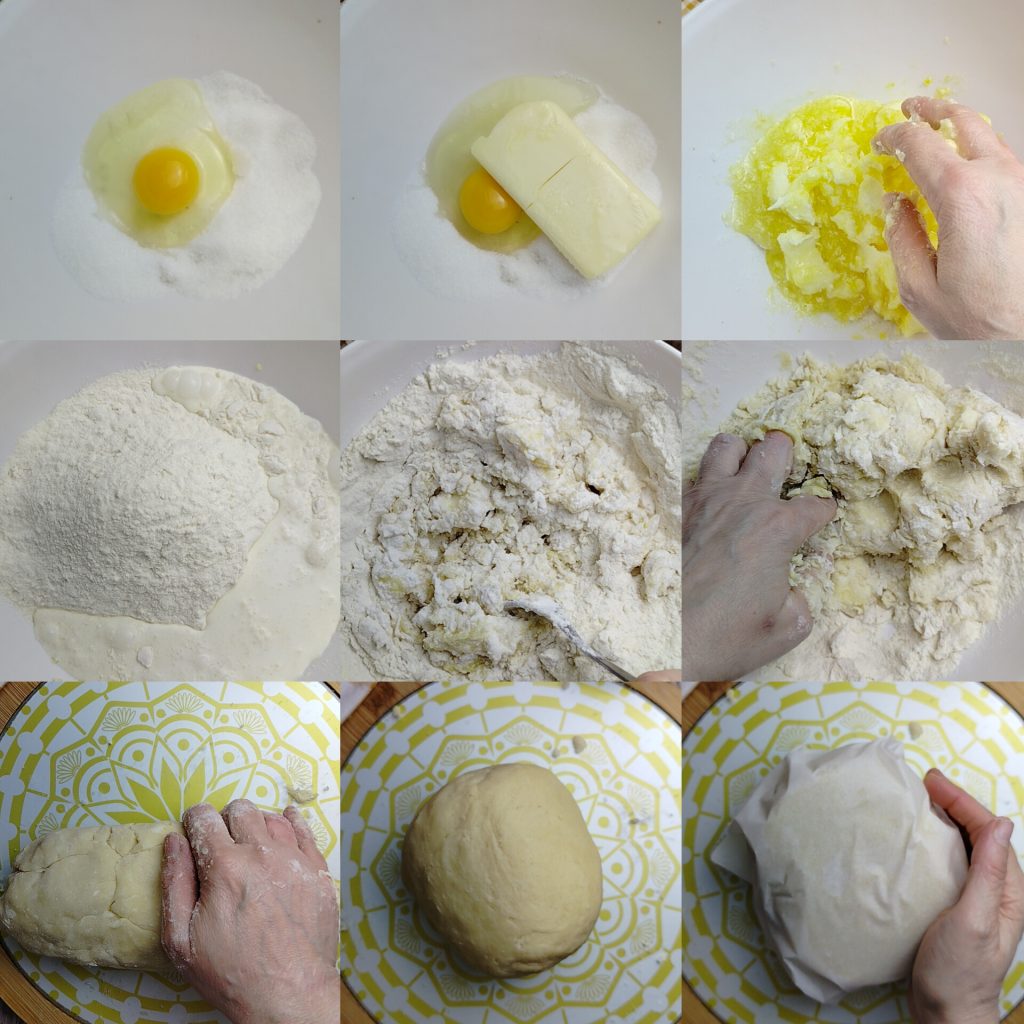 • Pour réaliser la pâte sablée à la crème, commencez par mettre dans un bol le sucre et le beurre ramolli à température ambiante. Mélangez avec les mains jusqu’à incorporation du sucre. Toujours dans le bol, ajoutez la farine et la crème et continuez à travailler jusqu’à ce que toutes les parties liquides soient bien absorbées par la farine. Transférez la pâte sur le plan de travail légèrement fariné, en gardant un peu de farine à portée de main si nécessaire pour travailler correctement la pâte, en veillant à ne pas en ajouter trop. Travaillez-la rapidement. Lorsque la pâte est lisse et homogène, enveloppez-la dans du papier cuisson ou du film alimentaire et laissez-la reposer dans la partie basse du réfrigérateur pendant au moins 30 minutes. Au terme de ce temps, reprenez-la et travaillez-la comme souhaité après l’avoir légèrement ramollie entre les mains.