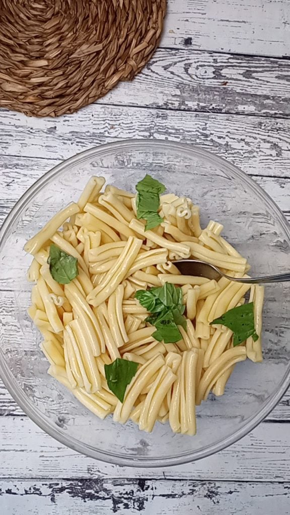 Comme format, j’ai choisi les casarecce, capables de bien retenir l’huile à l’intérieur, ainsi elles resteront tendres et délicieuses.