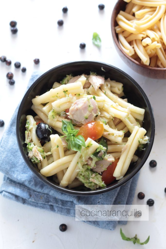 Salade de pâtes froides avec thon et courgettes, avec seulement la cuisson des pâtes, une recette facile et rapide, très appétissante, idéale en toute occasion.