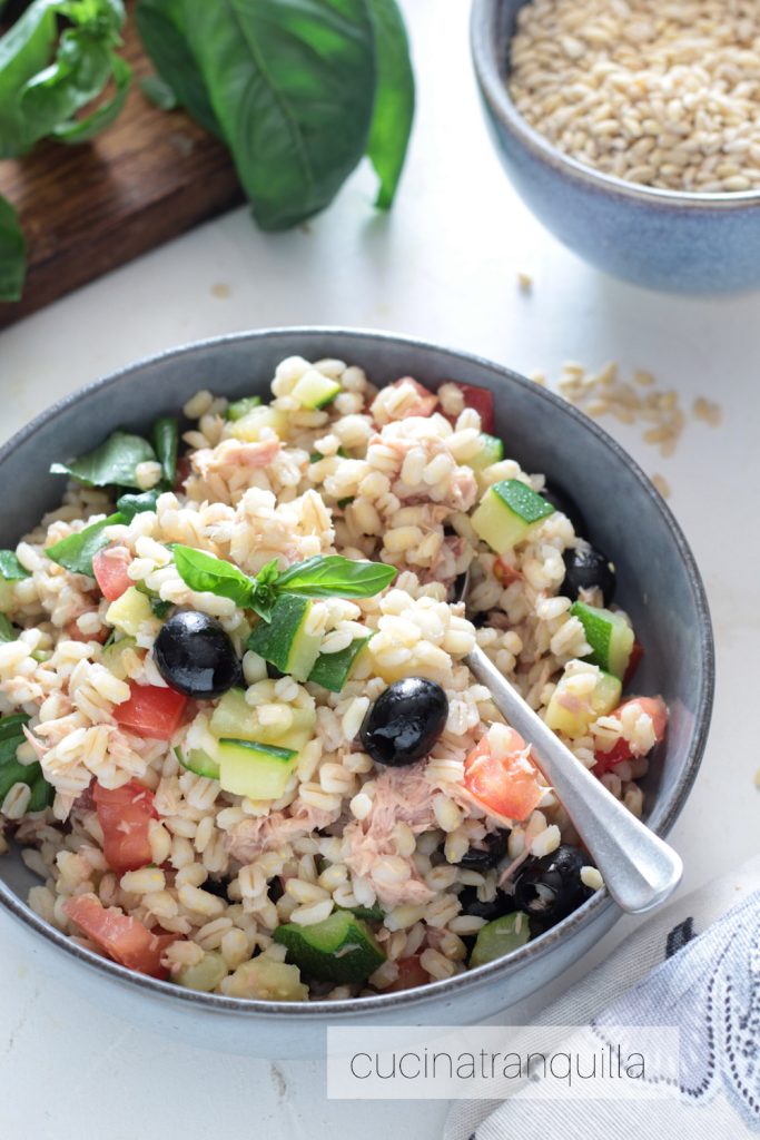 Salade d’orge et de thon avec courgettes, un plat principal très facile, léger et savoureux à réaliser en toute occasion.