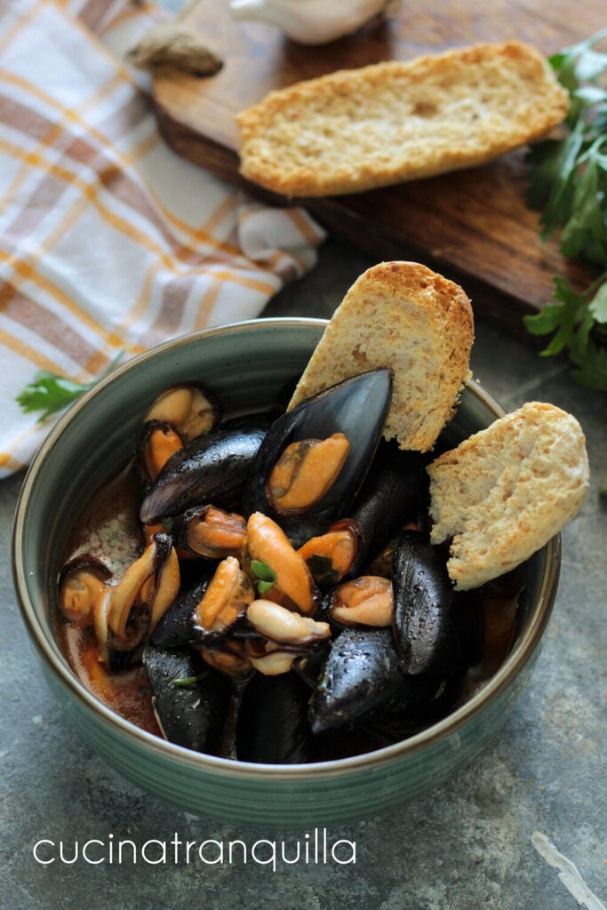 Soupe de moules à la tomate, une recette très facile à réaliser, de préférence avec des ingrédients frais, même si rien ne vous empêche d’utiliser les moules en coquille au congélateur du supermarché, surtout si vous n’avez pas de poissonnerie à proximité. Évidemment, mon conseil d’utiliser des produits frais dans certaines recettes vient du fait d’obtenir un résultat final impeccable et aussi de privilégier les produits locaux qui n’ont pas toujours des coûts excessifs, en fait, la plupart du temps, ils sont assez abordables. Le problème d’utiliser, dans ce cas, des moules fraîches est principalement leur nettoyage. Si votre fournisseur de confiance ne peut pas les nettoyer avec la machine appropriée, je vous explique comment faire, en vous guidant pas à pas dans les premières photos de la recette. Ici en bas, je vous laisse quelques idées avec cet ingrédient fantastique.