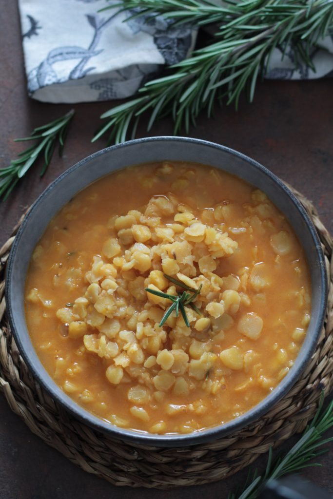 Soupe de pois cicerchie au romarin, un plat principal léger et savoureux, parfait pour combattre le froid, avec quelques ingrédients simples.