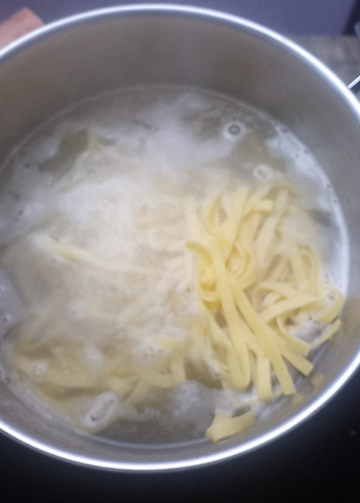 • Dans la même eau, fais cuire les pâtes et égoutte-les al dente.