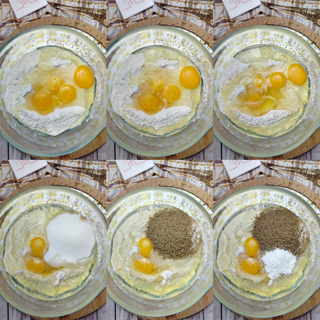 • Pour faire les Taralli sucrés à l’anis, commencez par mettre tous les ingrédients, sauf le lait, dans le bol. Soyez généreux avec les graines d’anis qui donneront aux biscuits ce petit plus.
