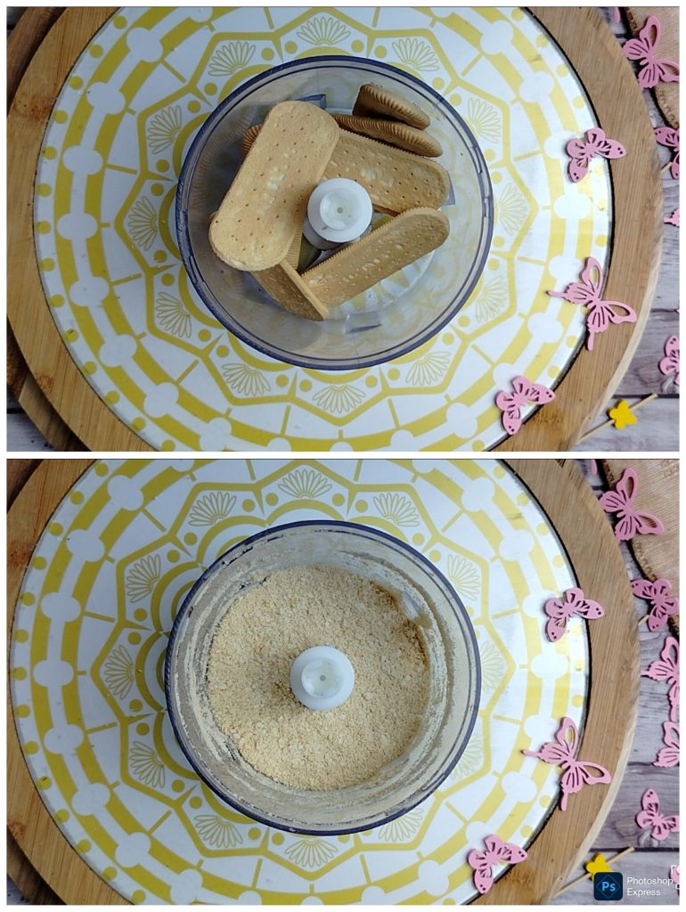 Mettez les biscuits secs dans un mixeur et réduisez-les en une poudre assez fine.
