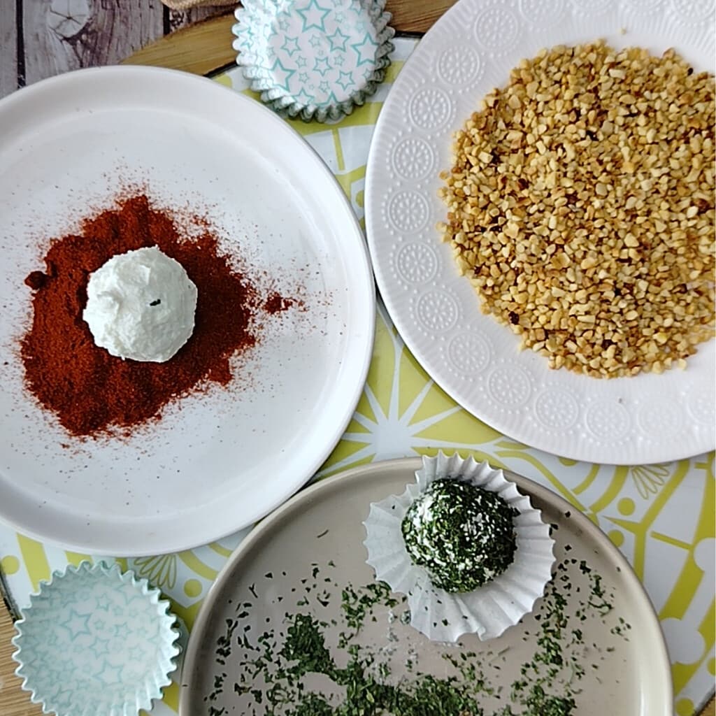 Plus elles seront colorées, plus les petites truffes seront belles à voir. Vous pouvez également mélanger les différentes panures pour un effet arc-en-ciel. Essayez de paner de manière homogène les différentes petites boules. En multipliant la quantité de fromages, vous obtiendrez plus de petites boules en fonction du nombre de vos invités.