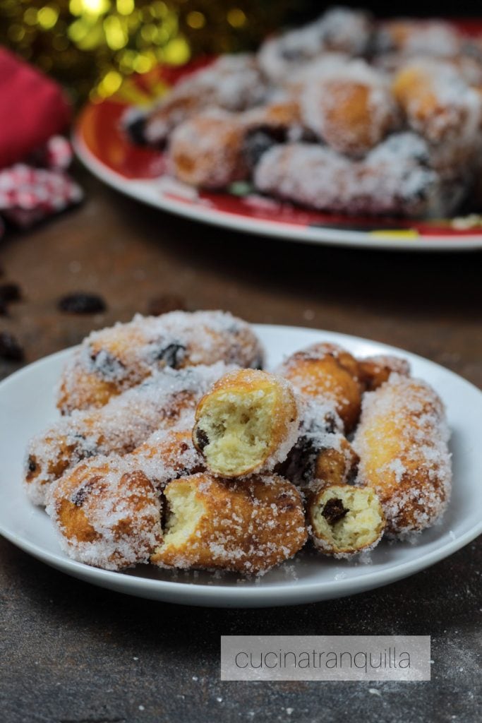 Turcinill abruzzesi avec raisins secs, les fritures de Noël abruzzaises, avec les cacionetti à base de farine et de pommes de terre, avec raisins secs.