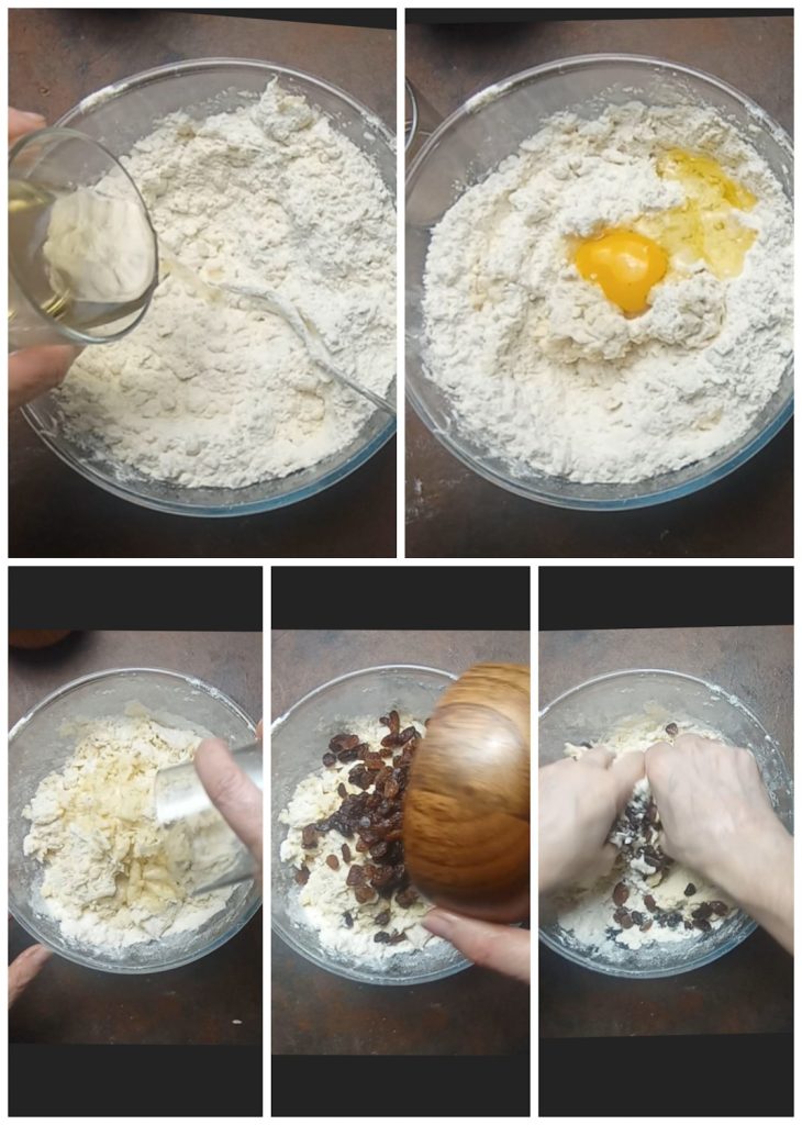 Ajoutez à nouveau l’autre partie du vin, les raisins secs et mélangez à nouveau.