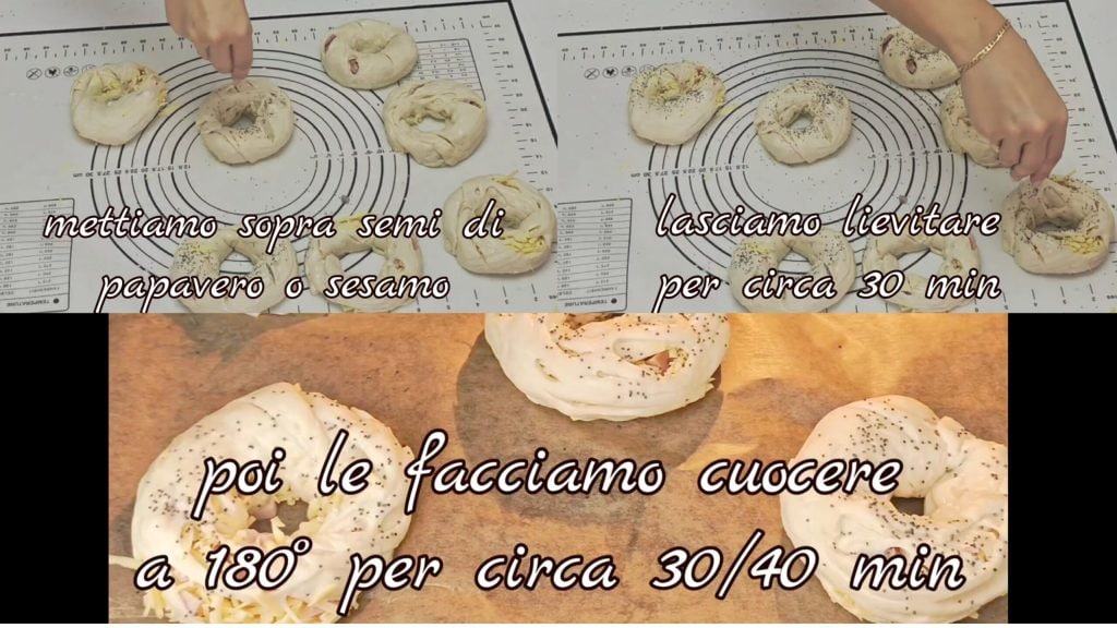 fermez les extrémités pour obtenir un beignet (regardez la vidéo).Continuez de la même manière avec les autres. À la fin, si besoin, faites encore quelques petits ajustements. Badigeonnez-les avec un peu de lait