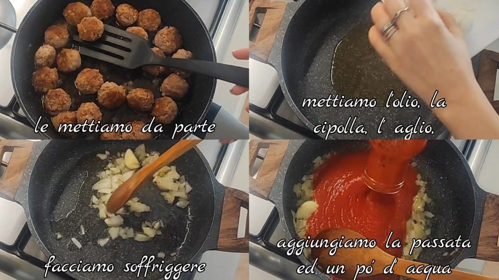 Mettons un peu de basilic et de sel et faisons cuire pendant environ 20 min. Puis ajoutons les boulettes et faisons cuire encore 20 min environ. Nous les retournons à mi-cuisson.