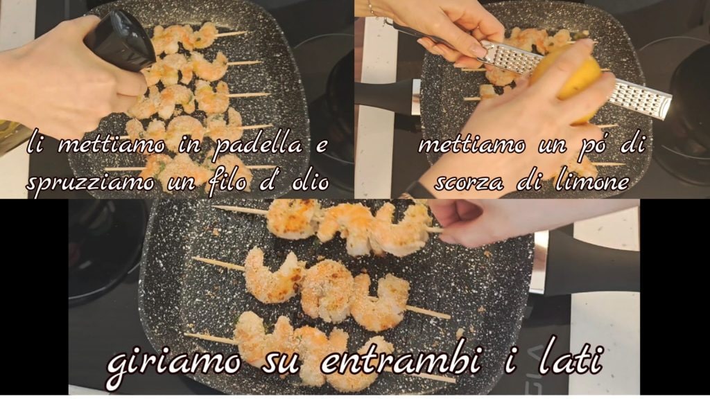 Une recette délicieuse très simple et rapide à préparer et excellente à servir comme entrée/apéritif dans un menu à base de poisson. Les brochettes sont généralement faites au four mais comme il fait chaud et je n’avais pas envie de l’allumer, j’ai expérimenté cette version à la poêle et je dois dire que le résultat a été très satisfaisant! Si vous aimez les crevettes et que vous cherchez une recette facile et rapide, essayez celle-ci et faites-moi savoir si elle vous a plu!