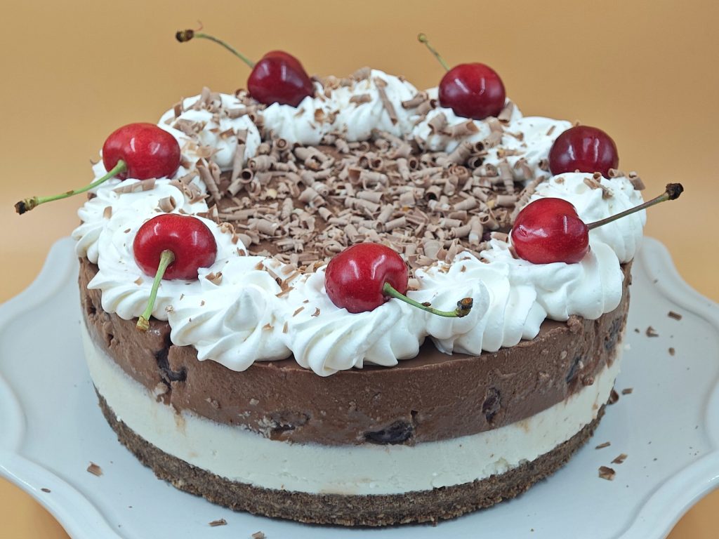 Un gâteau d’été, sans cuisson, réalisé en couches avec deux crèmes, une couche de cerises et une base de biscuits ! C’est certainement une alternative valable à l’originale forêt noire, au lieu d’allumer le four pour cuire la génoise, essayez cette version plus simple et rapide ! Ce cheesecake est parfait comme dessert en fin de repas, pour célébrer toutes sortes d’occasions ou simplement quand vous avez envie d’une douceur !