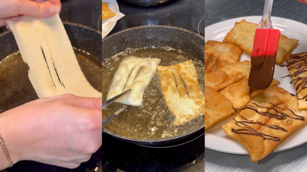 Avant de les frire, tirez légèrement chaque chiacchiere pour l’allonger encore plus. Faites frire quelques chiacchiere à la fois dans de l’huile bouillante, en les retournant rapidement jusqu’à ce qu’elles soient dorées et croquantes. Égouttez-les sur du papier absorbant et laissez-les tiédir. Faites fondre le chocolat au bain-marie ou au micro-ondes et décorez les chiacchiere avec le chocolat fondu.
