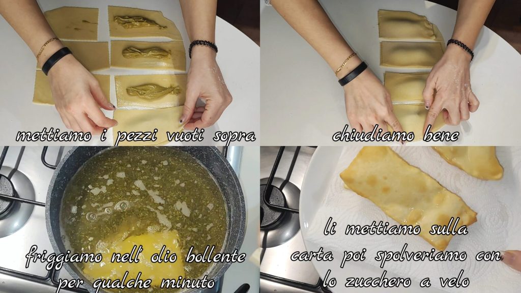 Pour la préparation des chiacchiere farcies à la pistache, regardez la vidéo ICI.