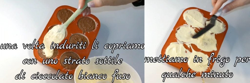 Une fois durcis, couvrez-les d’une fine couche de chocolat blanc fondu. Laissez durcir à nouveau puis retirez-les des moules.