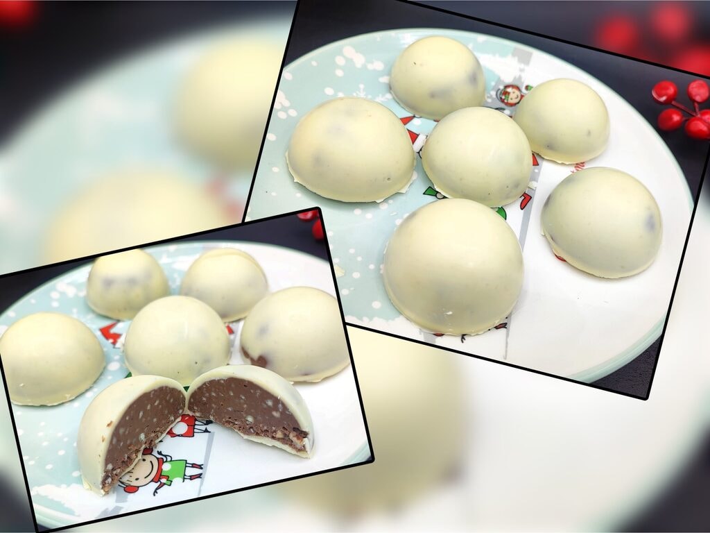 Des petites douceurs délicieuses et très mignonnes à déguster en fin de repas ou avec le café, ou à offrir pour Noël à des amis et à la famille. Les chocolats sont très simples à réaliser et nous pouvons les faire sous diverses formes en utilisant des moules en silicone, j’ai utilisé des demi-sphères, mais ils sont très jolis aussi en forme de cœur, de boule, de carré, etc. Je vous dis tout de suite qu’ils partiront comme des petits pains, tout le monde adorera ces chocolats ! Le chocolat a toujours été le plus aimé et recherché parmi les divers desserts, avec ces chocolats nous avons combiné deux types de chocolat, crème de noisettes et amandes grillées donc c’est un mélange fantastique. Essayez-les et dites-moi si vous les avez aimés !