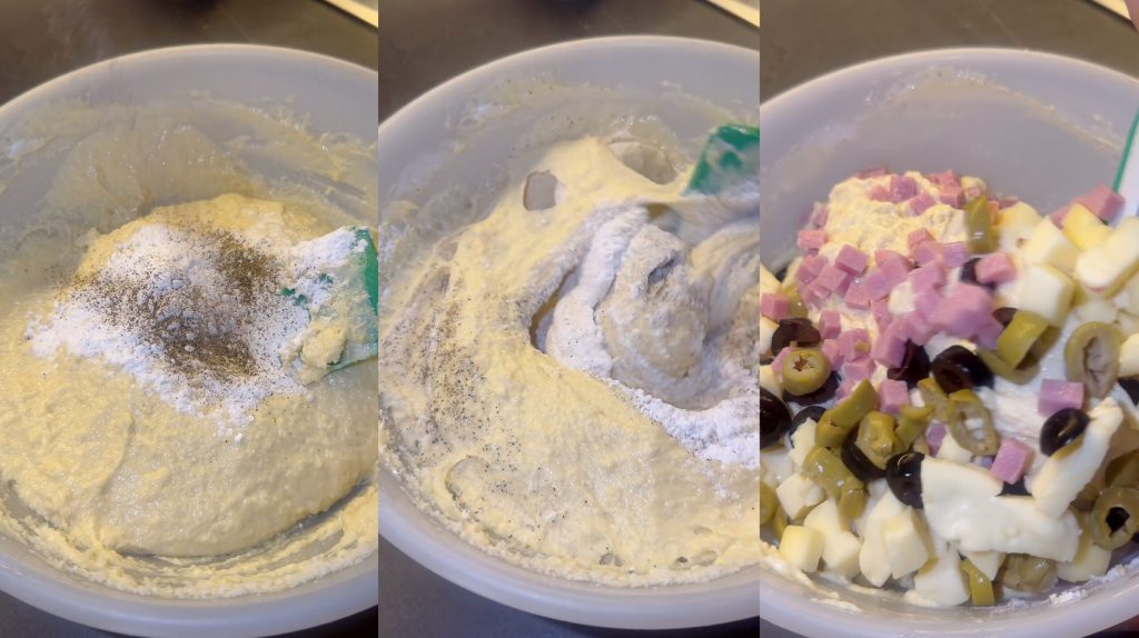 J’ajoute le fromage râpé et la levure chimique
