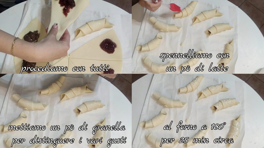Si vous voulez préparer un petit déjeuner comme au bar chez vous mais que vous avez peu de temps, je vous conseille d’essayer cette recette simple et rapide. Une recette qui se prépare en quelques minutes en utilisant la pâte feuilletée déjà prête, que nous allons garnir, modeler en forme de croissants et enfin cuire. Pour la garniture, vous pouvez choisir des crèmes à tartiner ou des confitures à votre goût. Si à la fin vous les badigeonnez avec du lait végétal, vous obtenez des croissants vegan pour que tout le monde puisse les manger, même les personnes véganes, intolérantes ou qui, pour diverses raisons, ne peuvent pas manger d’œufs ou de lait. Une astuce très pratique est (si vous obtenez trop de croissants) de les congeler et de les cuire au besoin le matin au four ou même dans la friteuse à air, de cette façon vous pouvez déguster les croissants chauds à peine sortis du four, un vrai délice !