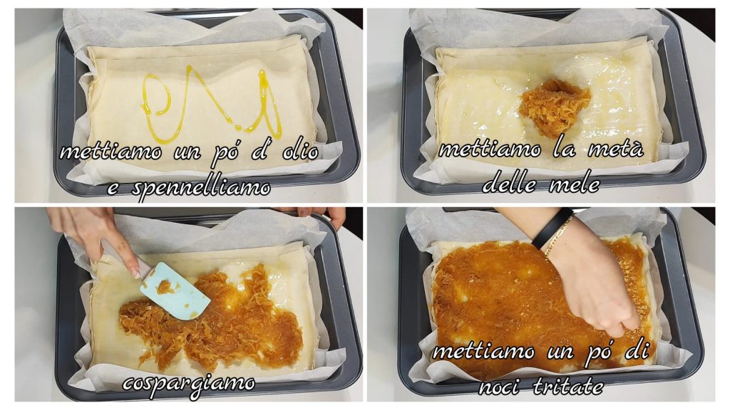 La préparation du dessert de pâte filo aux pommes et noix est très simple, regardez la vidéo ICI.