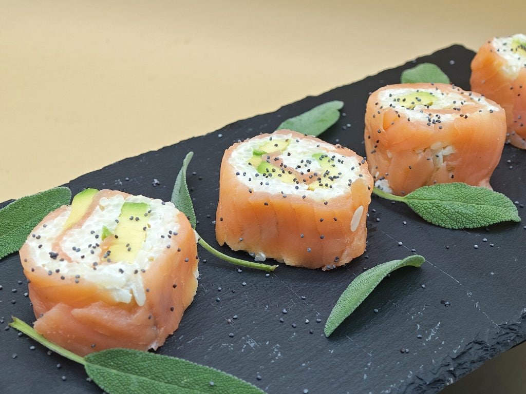 Aujourd’hui, le sushi devient de plus en plus à la mode et plaît de plus en plus. J’avais envie de sushi, mais je n’avais pas envie de sortir et en regardant dans le frigo, j’ai trouvé un paquet de saumon fumé, un avocat et du Philadelphia (je ne pouvais pas mieux tomber 😅) et alors je me suis mise à l’œuvre et j’ai expérimenté cette recette qui, je dois dire, m’a beaucoup plu et j’ai hâte de la refaire, peut-être en essayant différents goûts ! C’est une recette très simple que nous pouvons préparer à l’avance et servir accompagnée de sauce soja ou d’autres sauces au choix ! Essayez-la et faites-moi savoir ce que vous en pensez dans les commentaires !