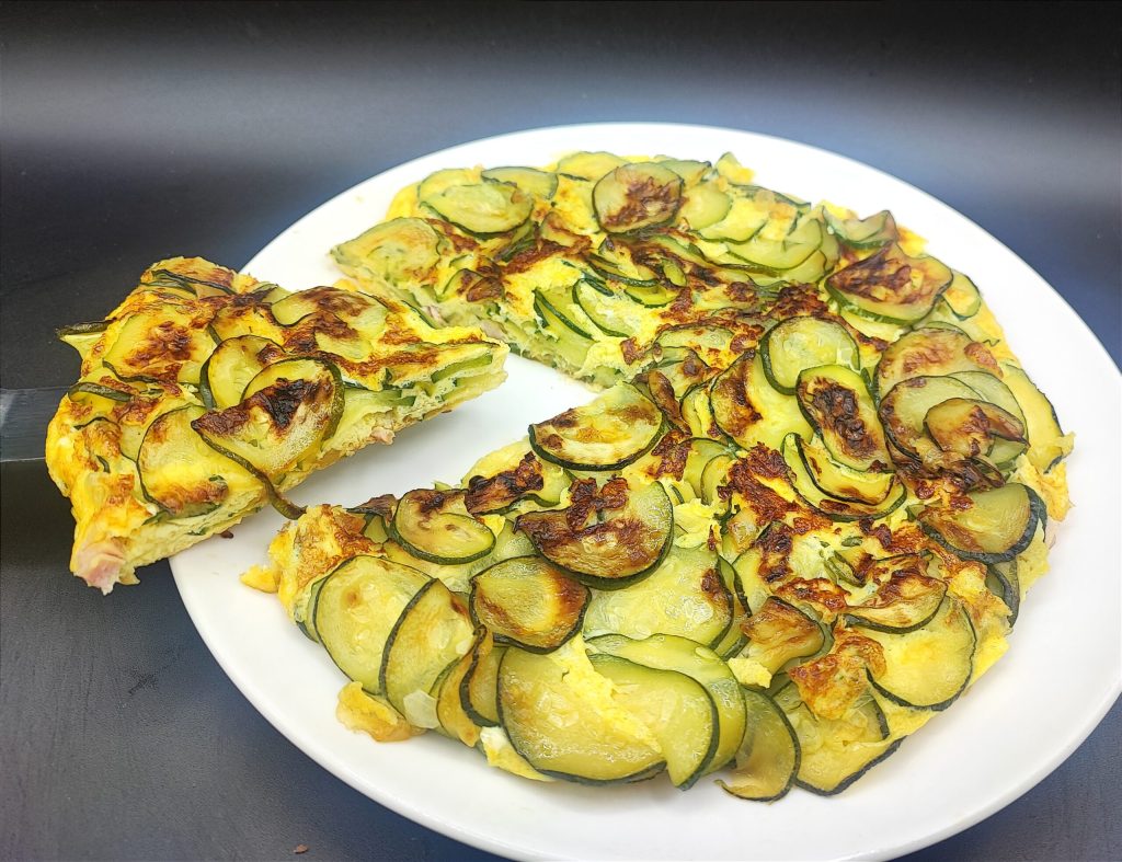 Une recette simple et rapide, parfaite à réaliser si nous avons peu de temps pour préparer le dîner ou le déjeuner ! La frittata même simple est un délice, mais avec l’ajout du jambon et des courgettes, elle l’est encore plus.