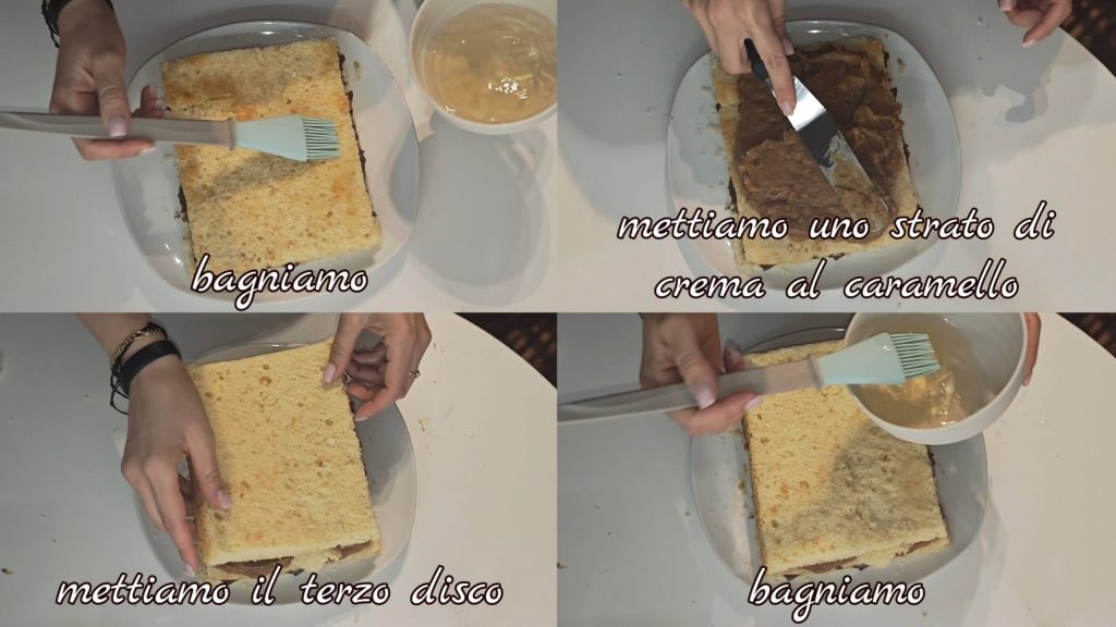 • imbibez-le. Ajoutez une couche de crème au caramel. Ajoutez le troisième, imbibez-le.