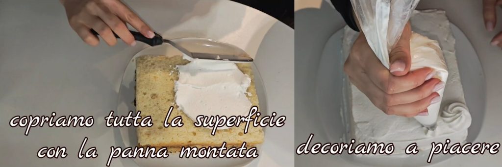• Recouvrez tout le gâteau avec la crème fouettée et décorez à votre goût.