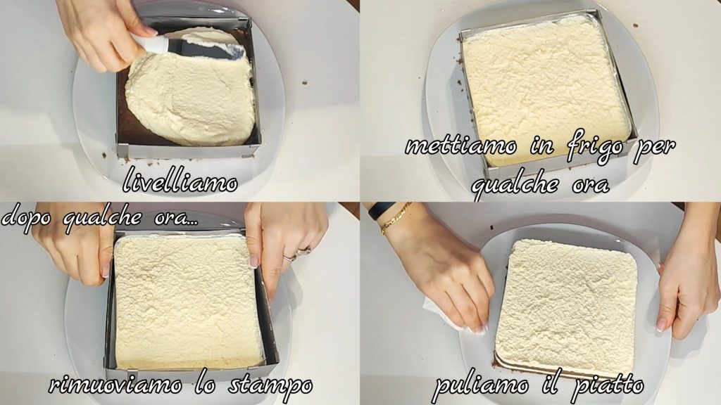 Pour la préparation du gâteau avec mousse au chocolat blanc, regardez la vidéo ICI.