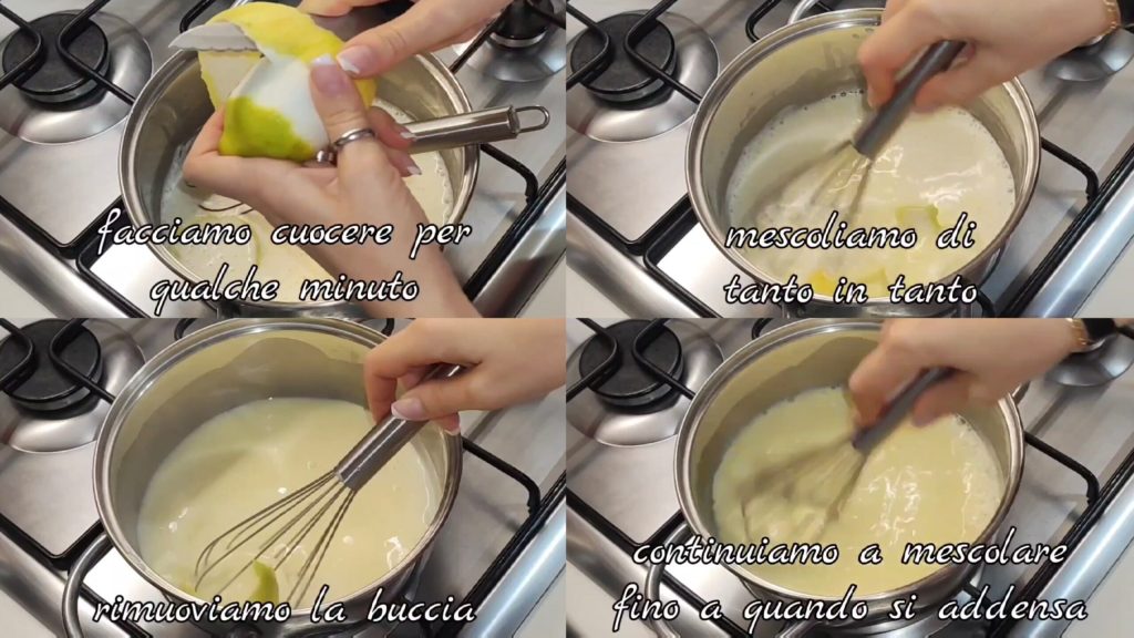 Faisons cuire à feu jusqu’à épaississement en remuant toujours. Retirons le zeste.