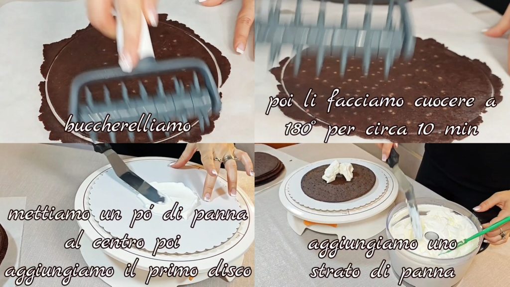Mettez un peu de crème au centre puis placez le premier disque cuit et refroidi. Ajoutez une couche de crème,