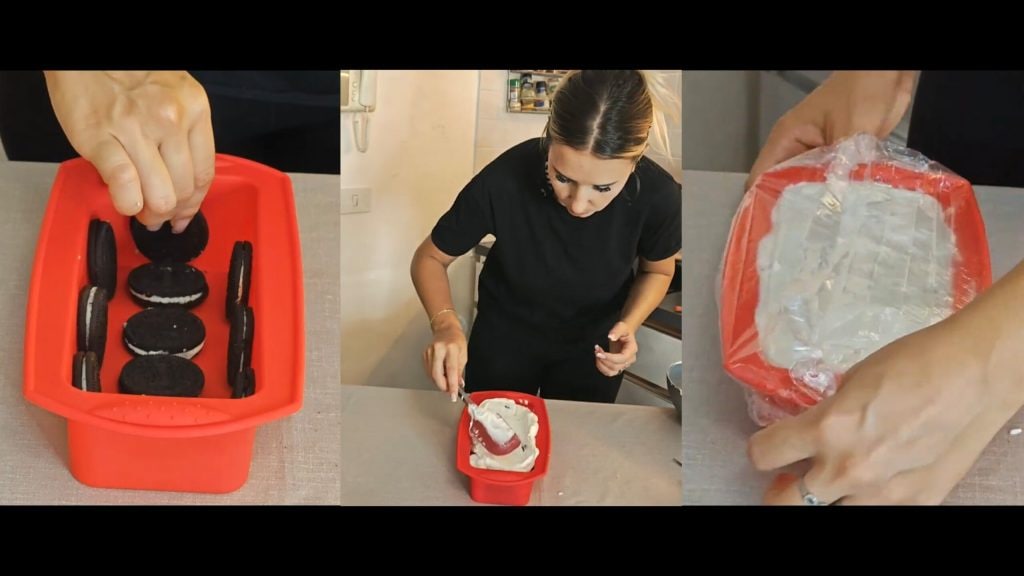 Dans un bol, mettez le mascarpone, le lait concentré sucré, la crème et fouettez jusqu’à obtenir un mélange crémeux et homogène. Ajoutez un peu de biscuits Oreo émiettés à l’intérieur et mélangez.