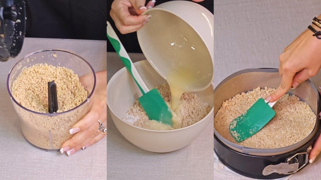 Émiettez finement les gaufrettes à la vanille dans le mixeur. Ajoutez la noix de coco râpée et le beurre fondu, mélangez bien jusqu’à obtenir une consistance sableuse mais humide. Versez le tout dans un moule à charnière de 22 cm (tapissé de papier sulfurisé à la base) et compactez bien avec le dos d’une cuillère. Placez au réfrigérateur pendant 30 minutes.Préparer la crème Raffaello