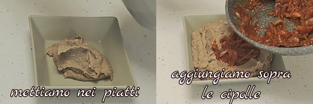 Mettons dans les assiettes et ajoutons la sauce aux oignons par-dessus !