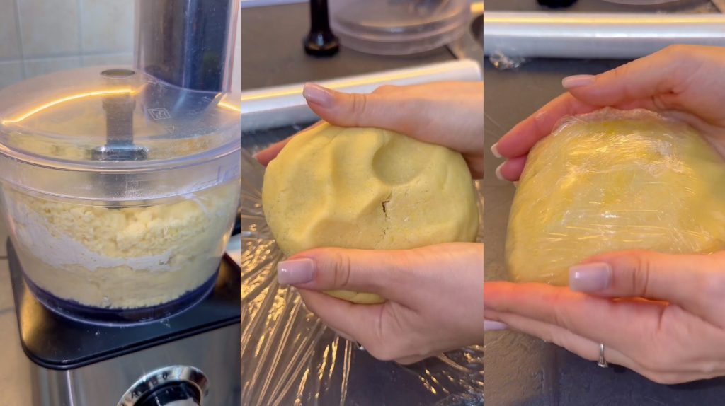 J’enveloppe la pâte dans du film alimentaire et la mets au réfrigérateur pendant environ 30 minutes.