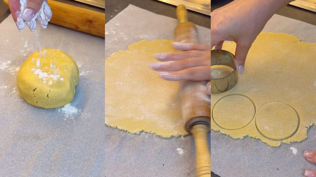 Je prends chaque cercle et le dispose dans le moule en l’appliquant bien.