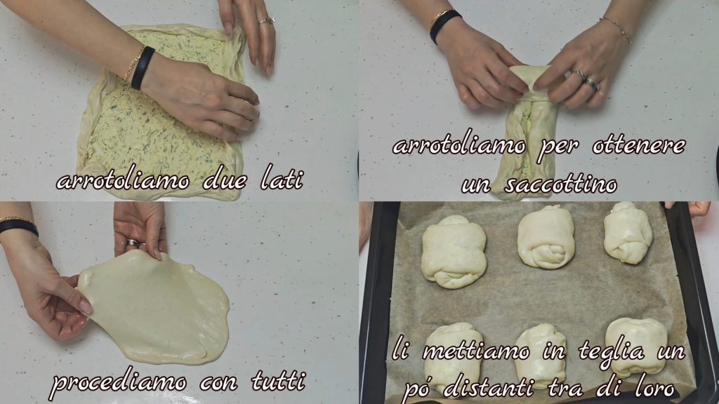 puis roulons deux côtés et ensuite roulons encore pour obtenir le pain. Procédons de même pour tous. Nous les plaçons dans un plat avec du papier sulfurisé en laissant un peu d’espace entre eux.
