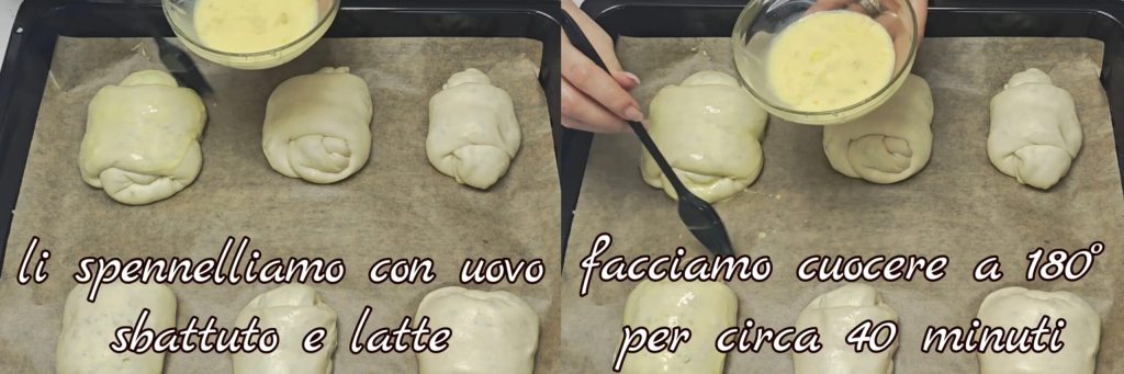 Nous les badigeonnons d’œuf battu et de lait puis faisons cuire à 180° pendant environ 40 minutes.