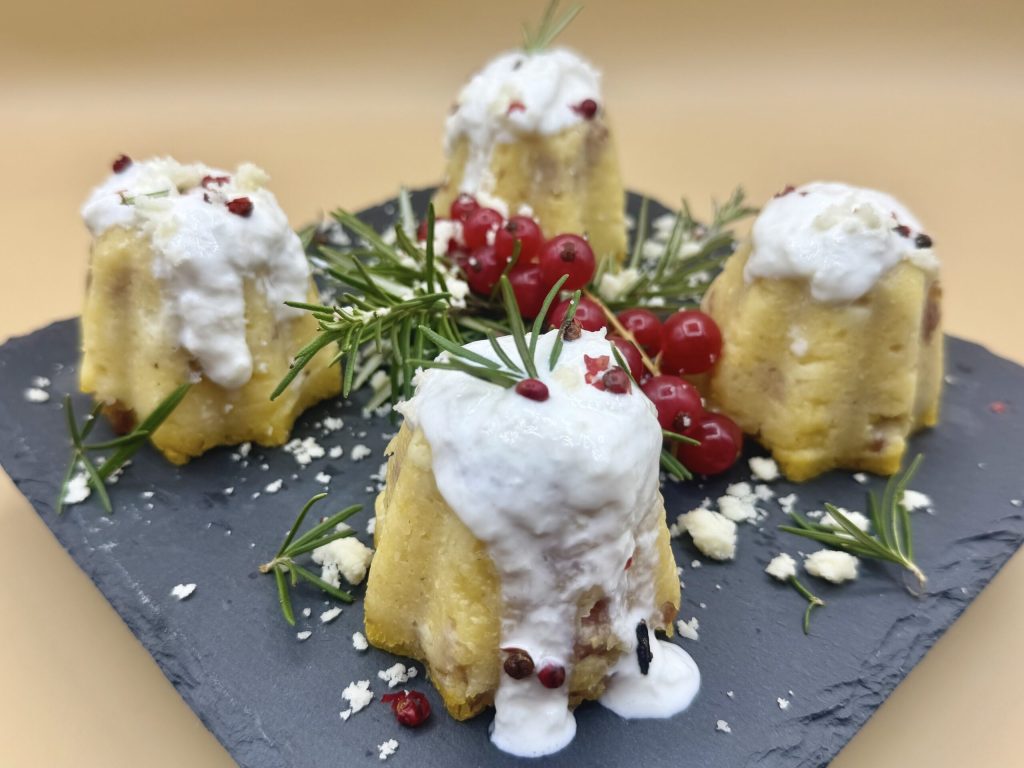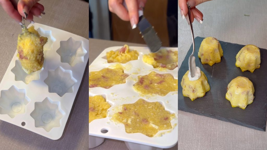 Les pandorini salés de polenta avec charcuterie et fromages sont une idée originale et spectaculaire pour enrichir la table des fêtes. Préparés avec une base de polenta moelleuse et enrichie de fromages et de charcuteries savoureux, ils sont cuits dans des moules à mini pandoro obtenant de petits gâteaux salés parfaits comme entrée ou finger food de Noël. La recette est facile, rapide et personnalisable : vous pouvez utiliser les charcuteries et les fromages que vous aimez le plus ou que vous avez déjà dans le réfrigérateur. Servis avec une cuillerée de stracciatella, ils deviennent encore plus crémeux et irrésistibles.