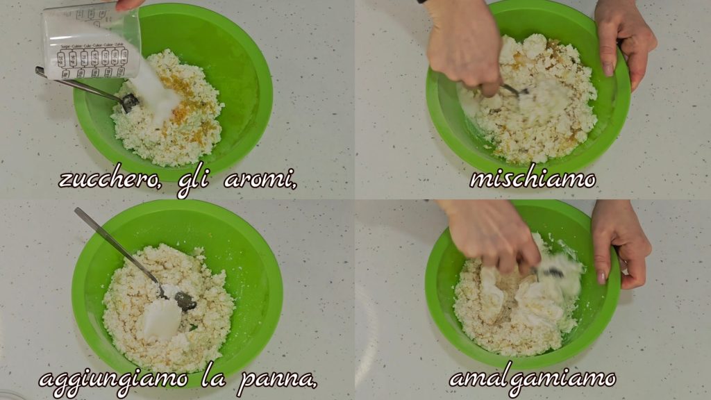 Dans un récipient, nous mettons la ricotta bien égouttée, le zeste de citron,